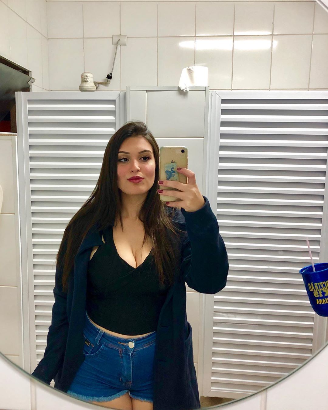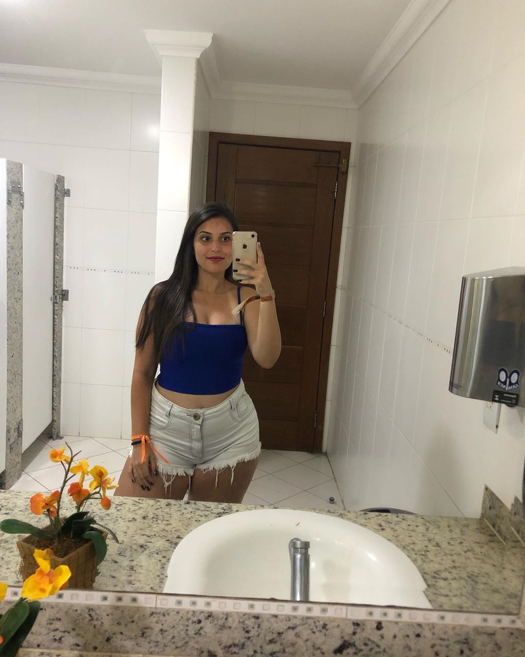 Essa outra foto em frente ao espelho também foi feita durante a mesma viagem, e realmente não dá para imaginar que ela estava em um estágio avançado de gestação.