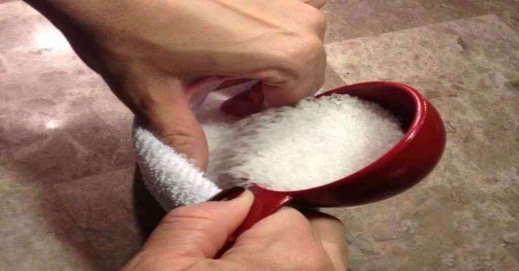 E não precisa gastar todo o sal que tem em casa. Para o tratamento apenas precisa de uma xícara.