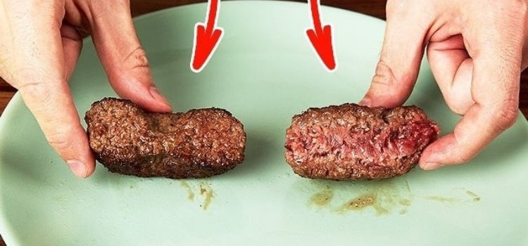 Está com pressa para assar os hambúrgueres? Para essa dica, eles precisam estar crus e descongelado. Use o dedo indicador e aperte gentilmente no centro do hambúrguer, deixando a marca do dedo, mas sem chegar ao outro lado. Coloque para assar e ele vai ficar bem-passado em menos tempo que o de costume.