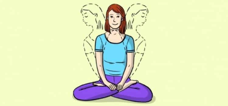 Volte as mãos para a posição inicial e dobre suavemente a cabeça em direção ao ombro esquerdo, e repita o exercício para o ombro direito.