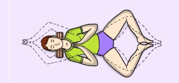 Deite-se em uma superfície plana e dura. Coloque um rolinho embaixo da 3ª e da 4ª vértebras do pescoço.