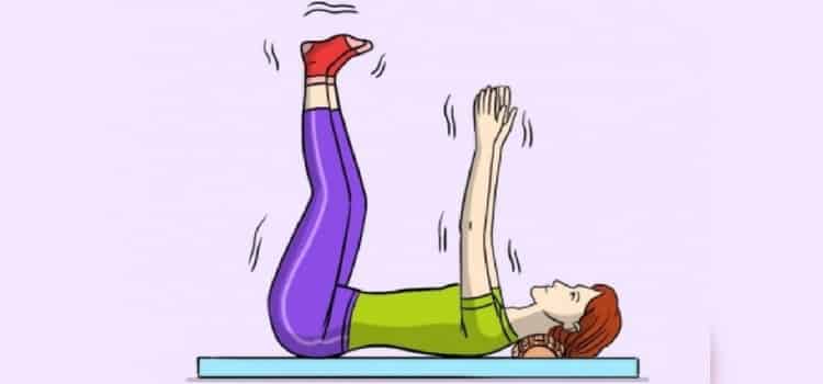 Deite-se em uma superfície dura, estique as mãos para cima no pescoço e coloque as solas dos pés perpendiculares ao chão.