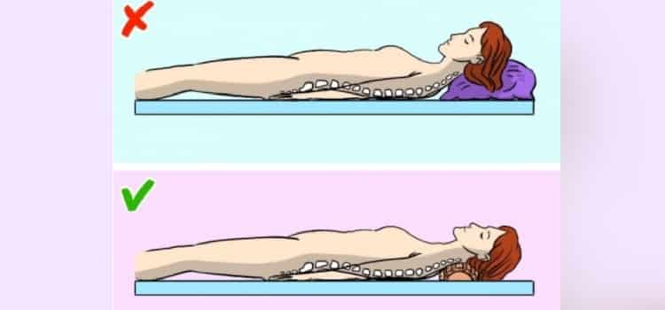 A dica é colocar um solinho embaixo do pescoço e usar um travesseiro baixo e menos fofo para manter a coluna reta.
