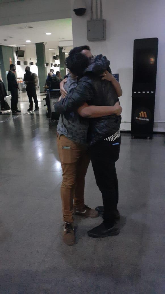 Ao chegar no saguão do aeroporto, Tomaz viu que lá estavam Carol, o amigo Jean e o irmão Gabriel, de costas: “Quando eu passei pela porta, ele estava de costas, conversando com o amigo, e não percebeu a minha chegada. A Carol falou pra ele: ‘Gabriel, quem é essa pessoa que tá atrás de você?’ E aí ele virou. Quando ele virou, não reconheceu de imediato. Ficou alguns segundo sem entender e só depois é que caiu a ficha”.