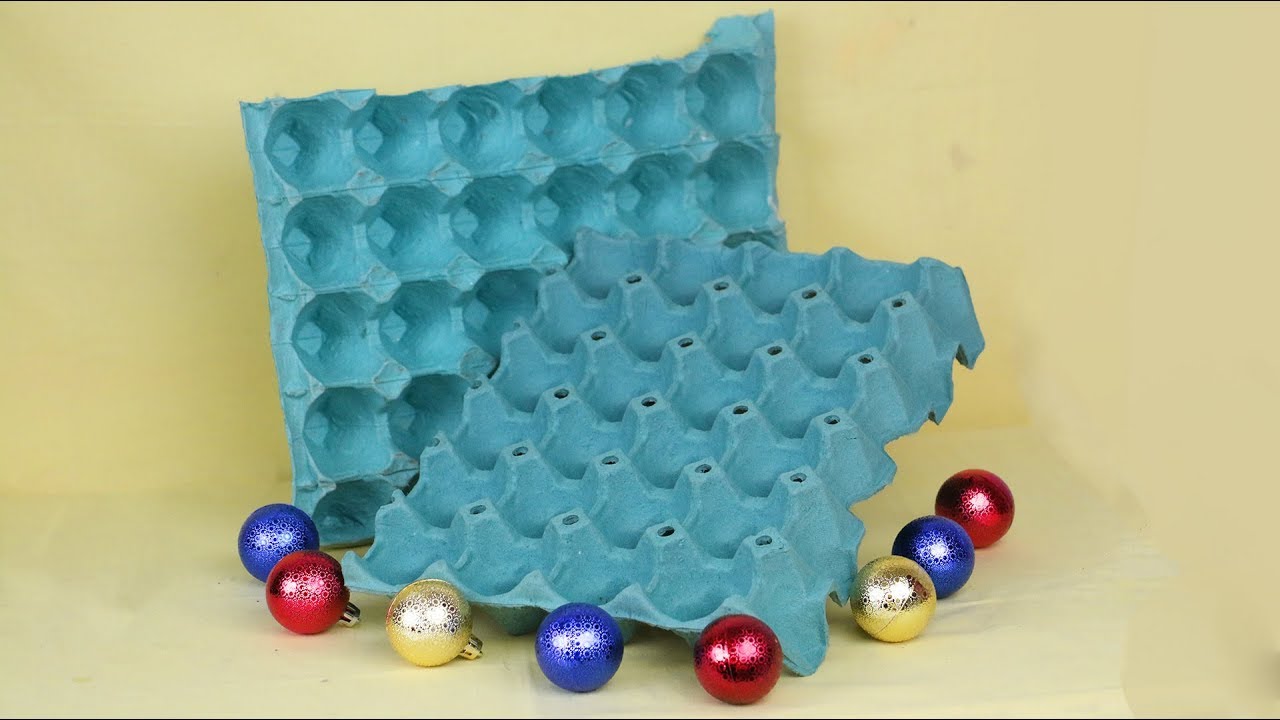 Nessa ideia você vai recortar toda a caixa de ovo e aproveitar cada parte para montar uma árvore de Natal pequena para decorar a mesa, o aparador, as mesinhas de centro e onde mais você quiser colocar. Pode pintar da cor que quiser e colocar diferentes enfeites. Veja como fazer: