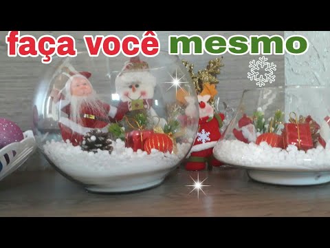Essa ideia de enfeite é simples de fazer e fica linda para colocar sobre a mesa, o aparador e os balcões da sua casa. Vai precisa de um pote de vidro, enfeites de árvore de Natal, daqueles simples, sal de cozinha e floquinhos de isopor. Veja que gracinha:
