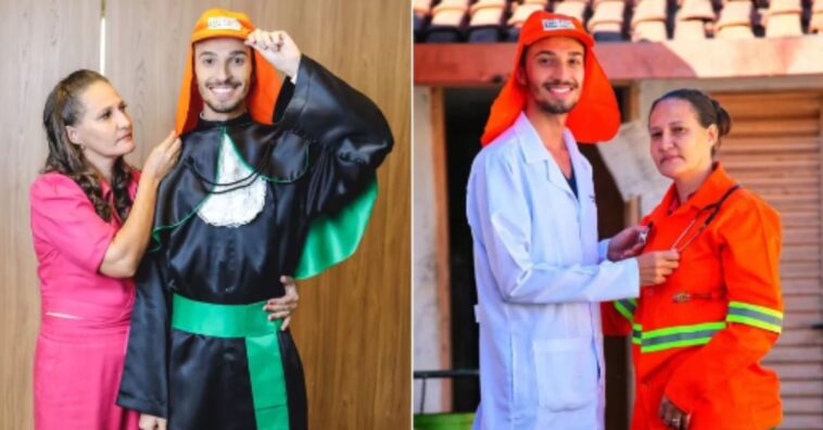 Kawê Guilhermy é um jovem de 22 anos que acabou de se formar enfermeiro. Sua mãe, Andréa, trabalha como gari há 16 anos e o filho nunca sentiu vergonha dela por causa disso.