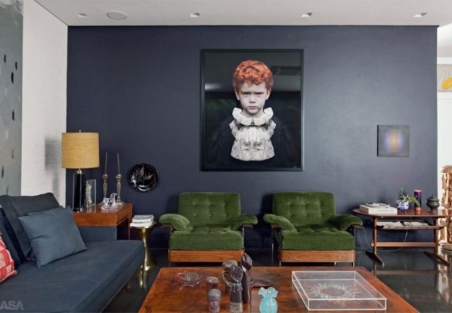 Além disso, a técnica da parede escura costuma ser usada em cômodos grandes para deixar mais acolhedor. Se você pintar as paredes de uma sala pequena em um tom escuro, vai trazer a sensação de que o espaço é ainda menor.
