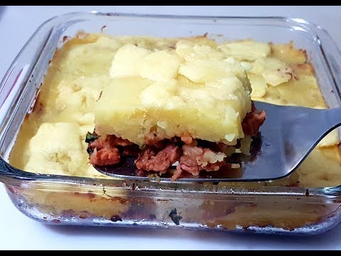 A linguiça calabresa é uma das preferidas de todos. Já dá para imaginar como fica o sabor. Essa receita também é com purê de batatas, e não tem exagero nos ingredientes, que são todos simples. Você vai usar manteiga, leite, cebola, alho, batatas, calabresas, tomate, pimenta, coentro, requeijão e muçarela. Acompanhe o preparo: