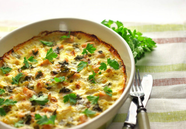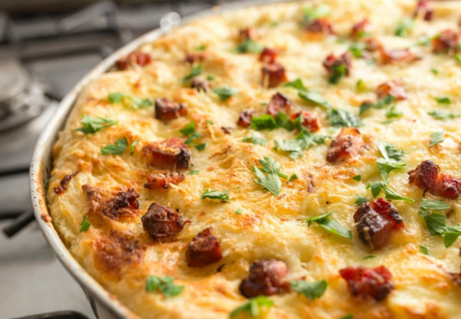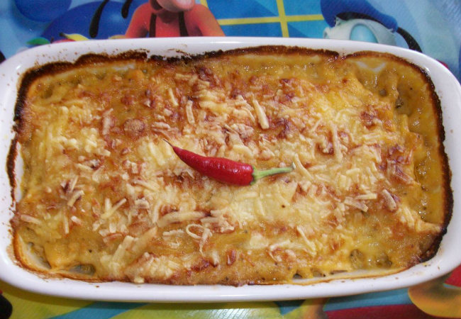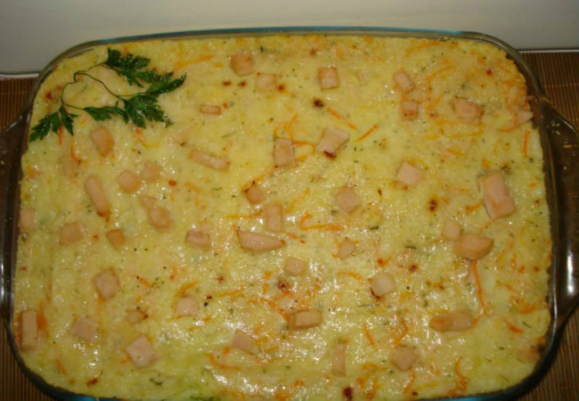 - Cubra com o purê de banana-da-terra e polvilhe com queijo ralado. Leve ao forno para gratinar.