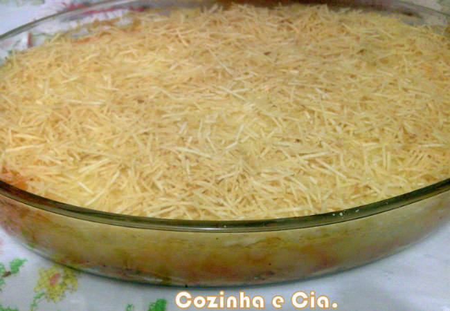 - Espalhe uma camada de queijo ralado e leve ao forno preaquecido por 20 minutos ou até dourar.