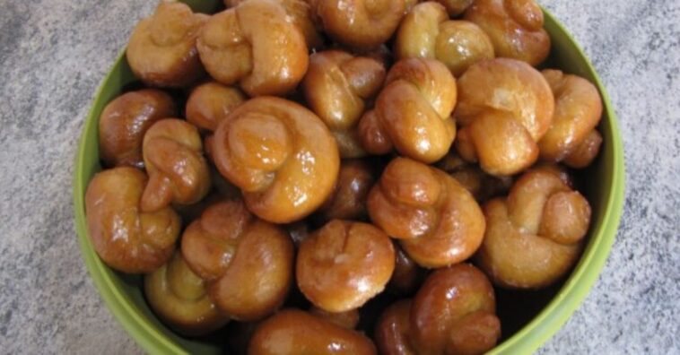 Esse bolinho é como um pãozinho em miniatura, pois leva fermento de padeiro e fica bem fofinho. Depois de frito ou assado, é mergulhado em uma calda e já pode ser servido ou pode passar no coco ralado que é o jeito mais tradicional.