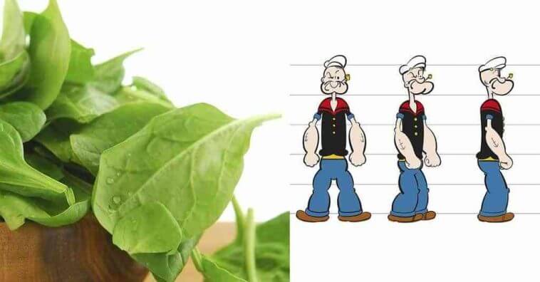 Tudo surgiu por um equívoco. O Dr. E. Von Wolf, um investigador de renome, se enganou numa publicação feita em 1870, onde acidentalmente aumentou dez vezes mais a quantidade ferro que o espinafre continha. Posteriormente, foi lançada a personagem do Popeye, em 1929 e, só em 1937, é que uns químicos alemães vieram corrigir o erro. Contudo, o desenho animado já tinha ganho fama e o espinafre estava na moda.