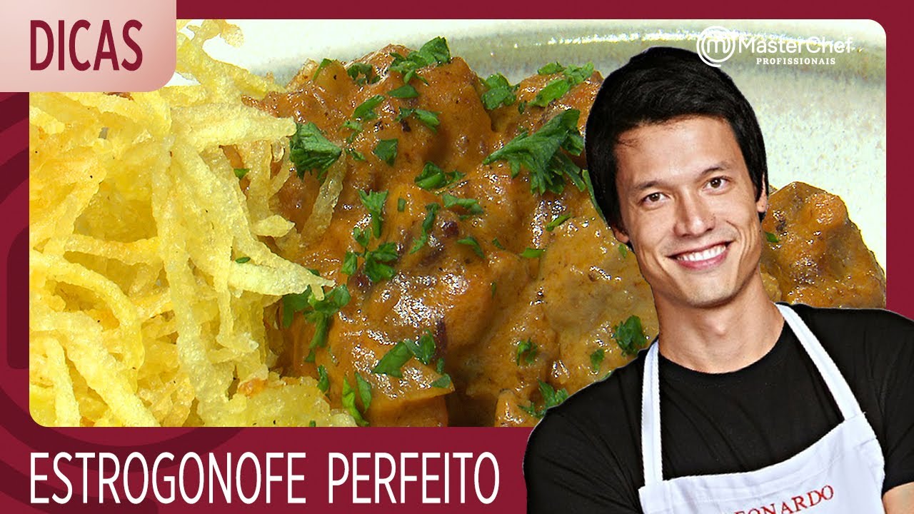 Assim como a receita da Rita Lobo, é claro que essa também tem cuidados especiais de profissionais da cozinha. Então esse estrogonofe leva ingredientes bem semelhantes à receita anterior, mas com diferenciais como farinha de trigo e vinho branco seco. Essa também leva tomate pelado em vez de extrato de tomate e catchup.