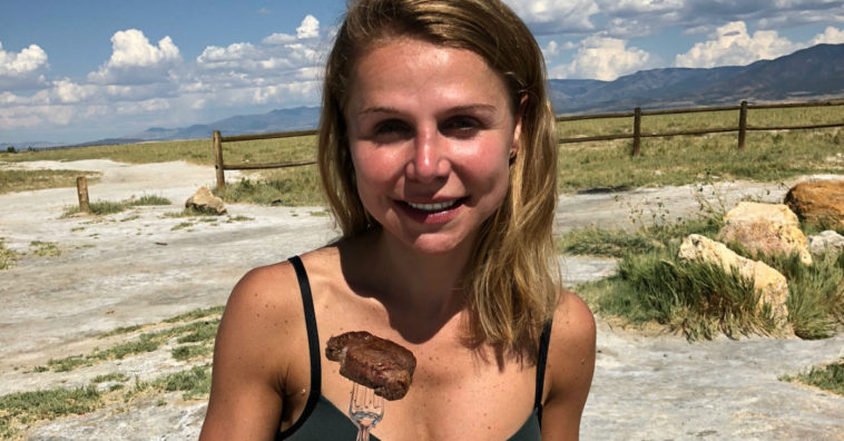 Crédito: Daily Mail Depois de um longo período pós-tratamento, se sentindo fraca e passando mal, ela comeu o primeiro pedaço de carne e passou a se sentir melhor rapidamente. De acordo com ela, “quanto mais eu observava, mais eu descobria que comer carne é a maneira mais eficiente de absorver nutrientes, muito mais do que quando você adiciona carboidratos e vegetais à mistura”.