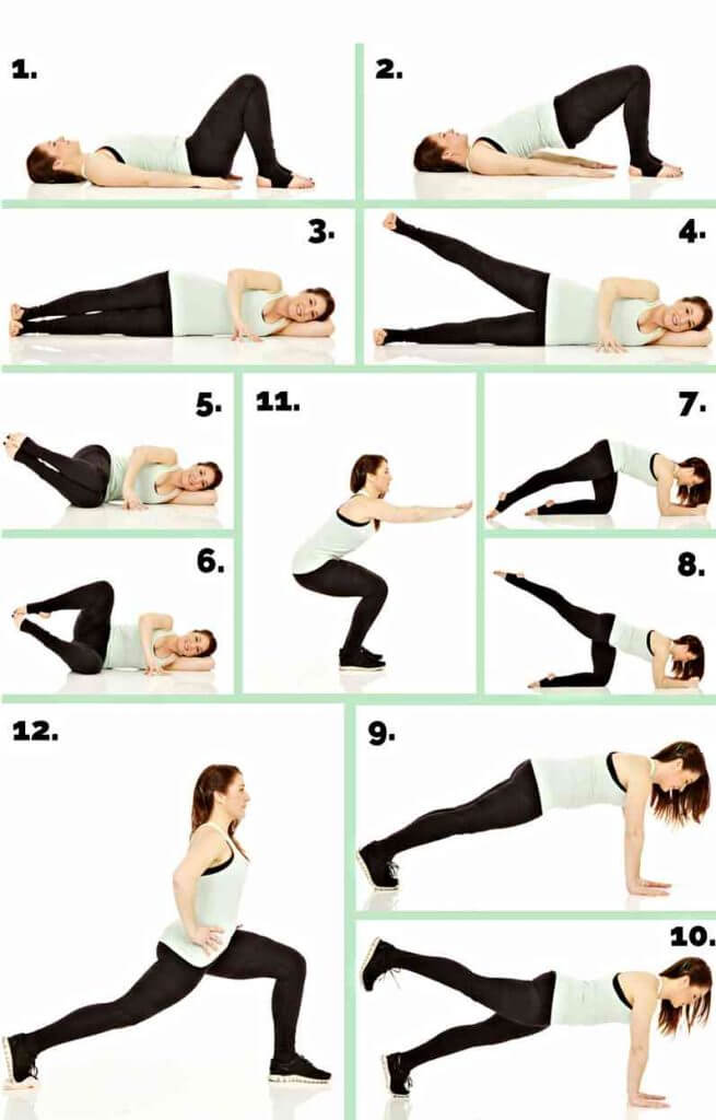 Os dois primeiros exercícios devem ocupar 30 segundos e o resto durante um minuto.