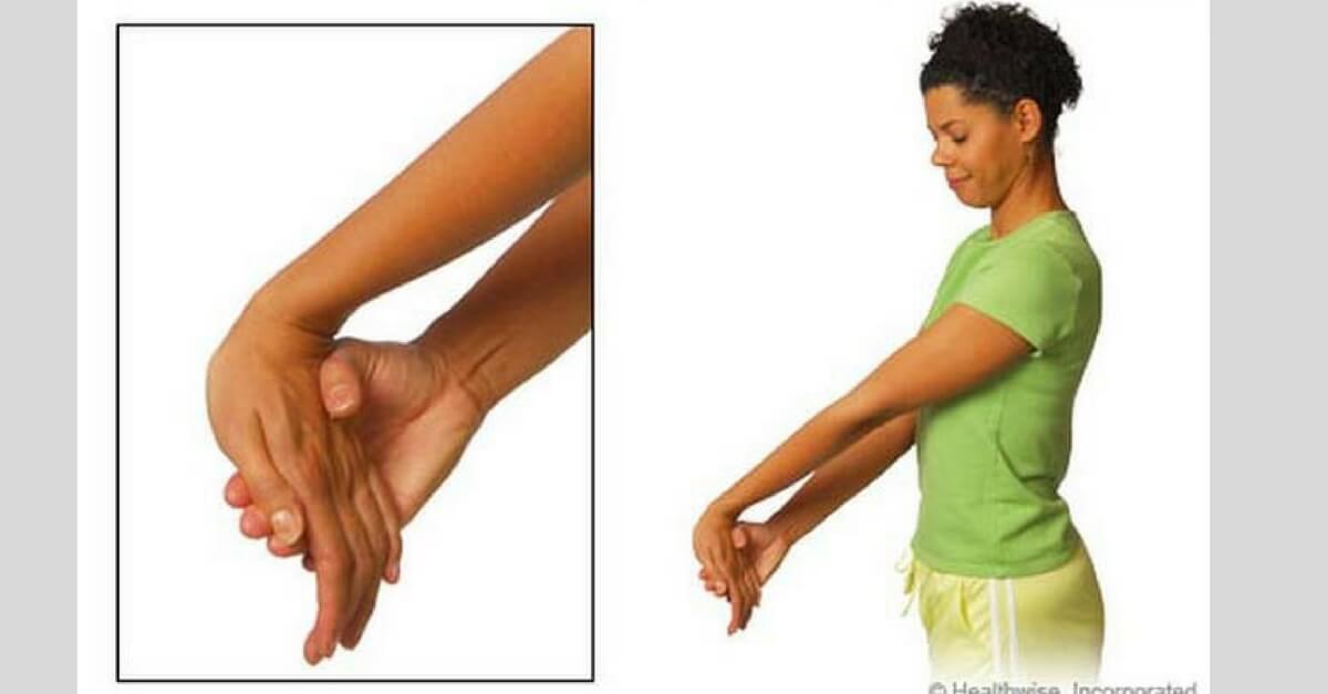 3. Force levemente até sentir que o antebraço está bastante esticado;