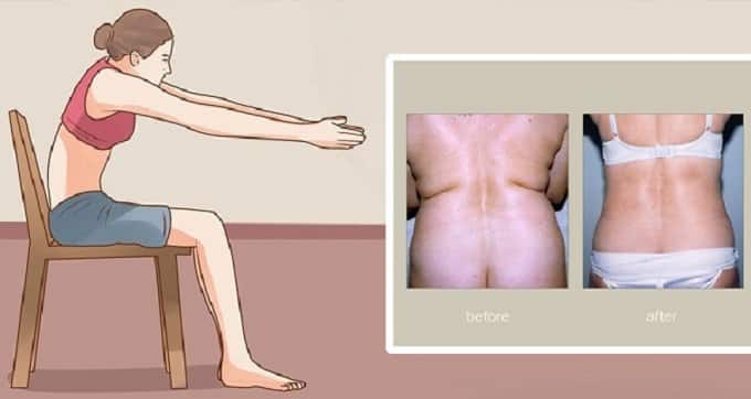 Sente-se em uma cadeira e alongue seu corpo, contraindo a barriga. É importante que seu abdômen esteja bem contraído. Segure-se nessa posição por 30 segundos e depois relaxe. Repita esse exercício 5 vezes.