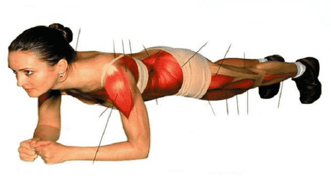 Deite-se com a barriga para baixo e eleve o corpo, ficando apoiada nos antebraços e nas pontas dos pés. A dica é manter uma linha reta desde a cabeça até os calcanhares, sem flexionar o corpo.