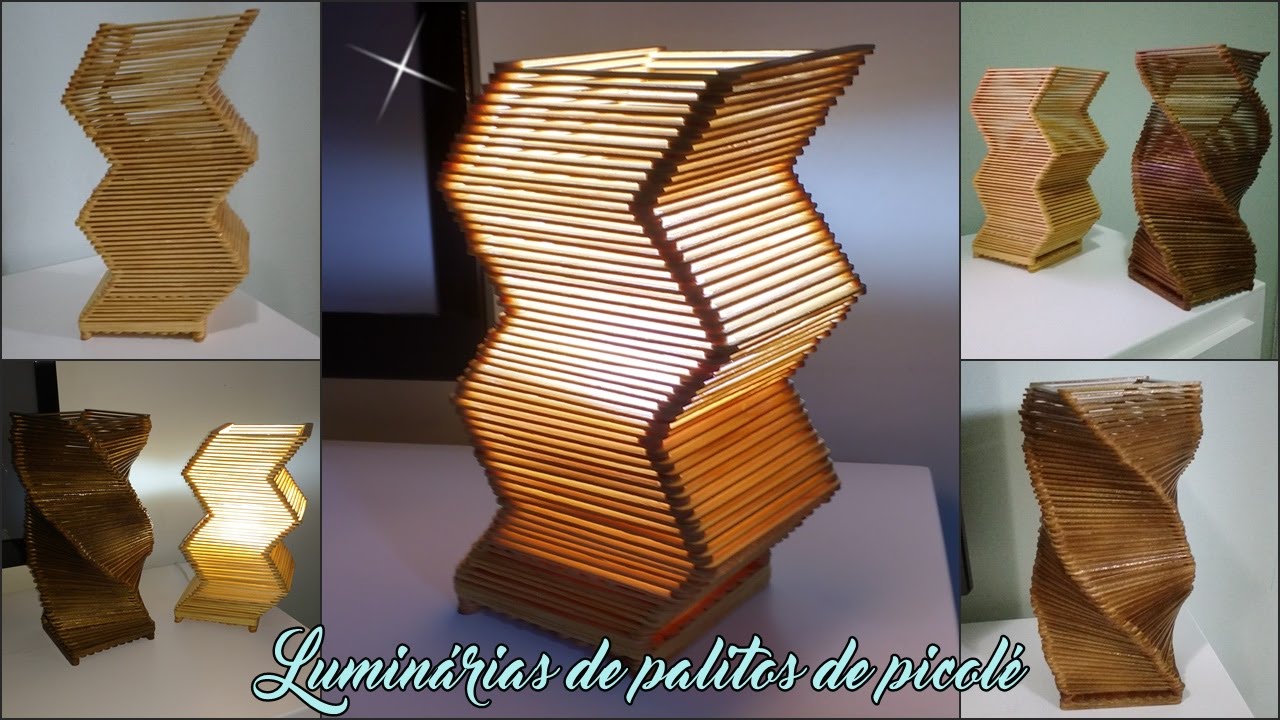 Esse modelo de abajur é ideal para colocar sobre a escrivaninha, a bancada da cozinha onde não pega água, sobre a mesa da sala de jantar, no aparador do hall e nos quartos. Ele fica lindo em qualquer cômodo da casa e o melhor de tudo é que é muito fácil de fazer, usando basicamente palitos de picolé novos.