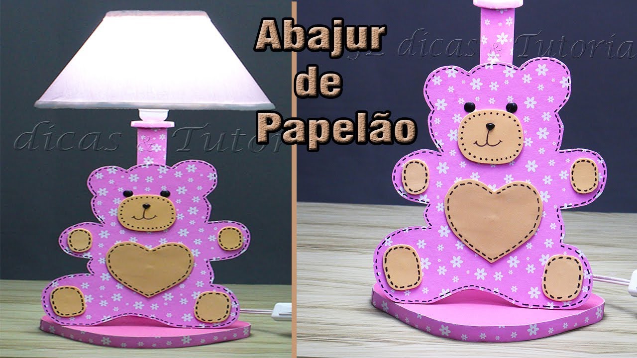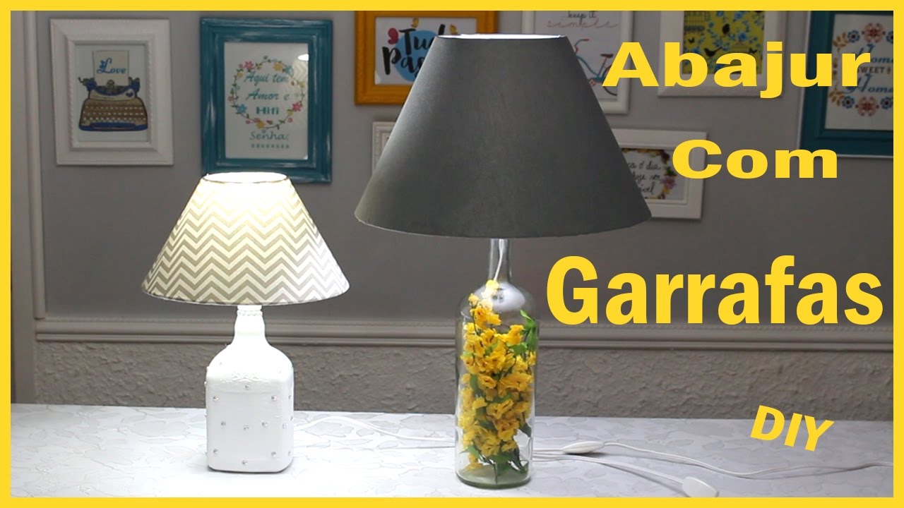 Nessa ideia, não é só a cúpula que é diferente. A parte da base do abajur é feita com garrafa de vidro reciclada. Você pode tanto pintar a garrafa quanto colocar objetos decorativos dentro dela para dar um charme especial. Veja no vídeo o passo a passo e como instalar o fio para ligar na tomada.
