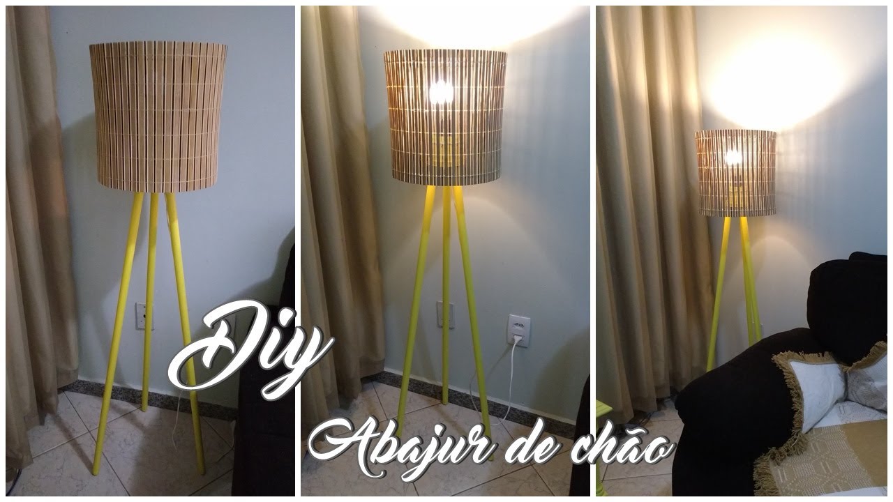 Os abajures de chão são especialmente recomendados para decorar as salas porque eles complementam os pequenos espaços dos cantinhos ao lado do sofá ou do rack. Esse modelo é feito com arames galvanizados, jogo americano de bambu flexível, linha de nylon, potinho de planta e cabos de vassoura pintados. Fica maravilhoso e combina com vários estilos de decoração, mas em especial os mais despojados, como rústico, o campestre, o escandinavo e o industrial.