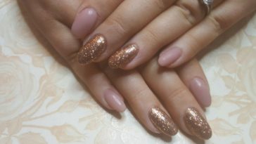 - aplique um esmalte incolor com glitter