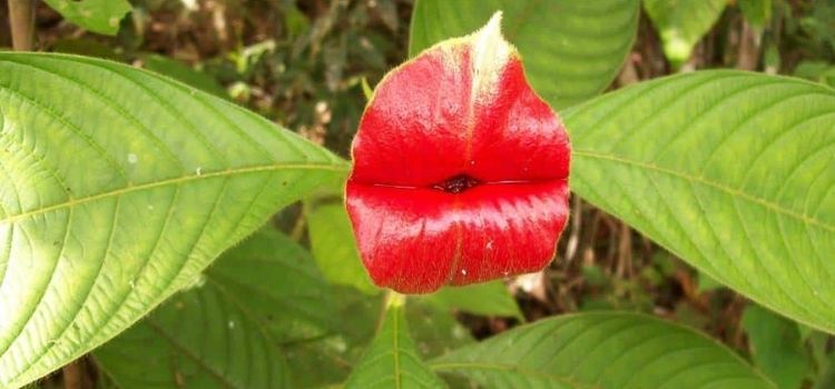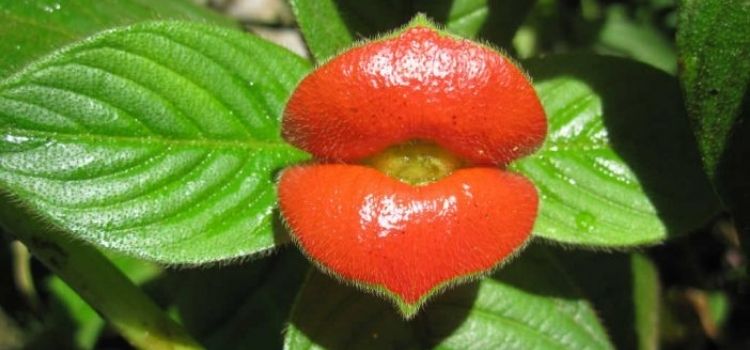 Essa planta produz brácteas (que parecem a flor) no formato de lábios vermelhos e carnudos, prontos para beijar as borboletas e beija-flores que chegam para polinizá-la.