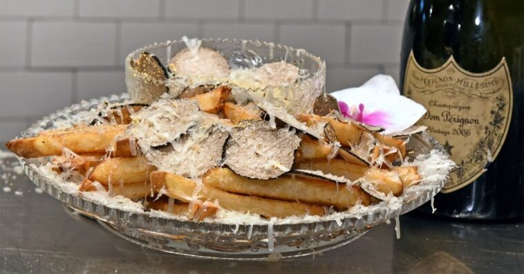 Calma, o Serendipty 3 justifica: essas batatas são servidas com “o molho dos molhos”, trufas e, claro, ouro comestível.