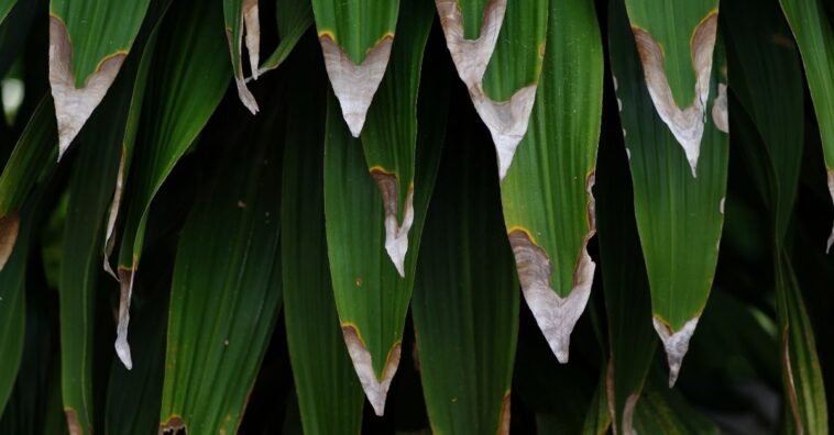 Por que as folhas das plantas ficam com pontas secas e queimadas?