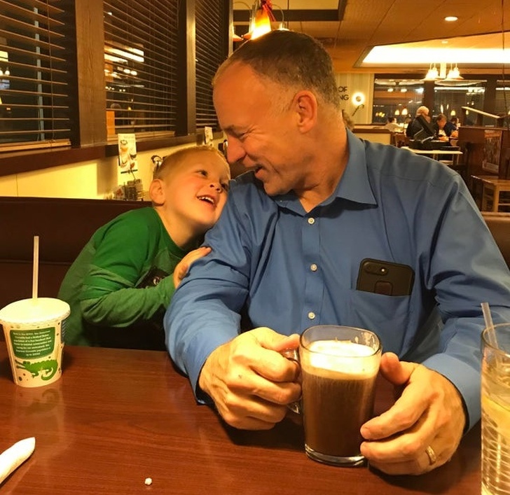 9. “Meu filho e meu marido ficaram um tempo sem se ver e durante o reencontro não conseguiram parar de sorrir um para o outro”