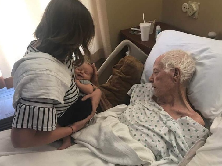 10. “Meu avô, instantes antes de sua morte, arrancando o primeiro sorriso da vida de seu bisneto recém-nascido”