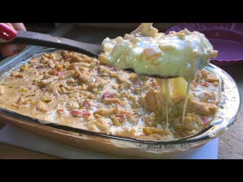 Essa receita é feita com peito de frango desfiado, ingredientes deliciosos para deixar colorido e bem cremoso, e no final vai ao forno para derreter o queijo colocado por cima.