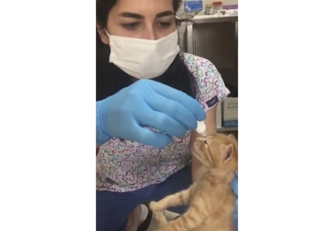 Impressionados com a reação da gata, os profissionais pegaram seu bebê para examinar. De fato, havia uma infecção no olho dele, e os médicos logo começaram o tratamento. Depois de algum tempo, o bebê já conseguiu abrir o olho recebeu alta.