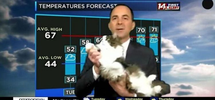 Assim como grande parte dos trabalhadores no mundo, o jornalista Jeff Lyons, responsável pela previsão do tempo do canal de notícias WFIE-TV, dos EUA, também está trabalhando em home office durante a quarentena.
