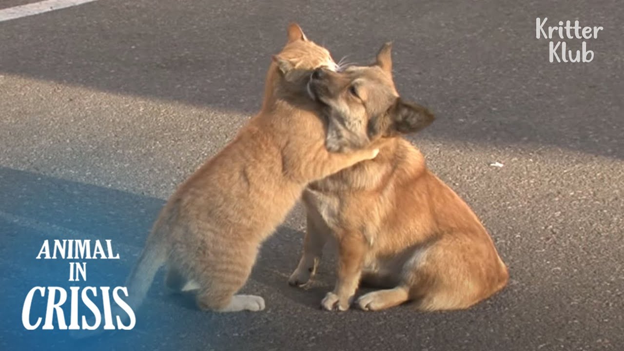 Então, o cão ficou sozinho, vagando pelas ruas, até que um amigo se aproximou. Um gatinho do bairro ofereceu sua amizade genuína e proteção ao cão, e eles passaram a ser melhores amigos.