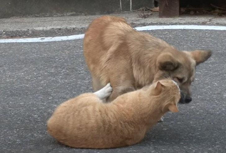 Então, o cão ficou sozinho, vagando pelas ruas, até que um amigo se aproximou. Um gatinho do bairro ofereceu sua amizade genuína e proteção ao cão, e eles passaram a ser melhores amigos.