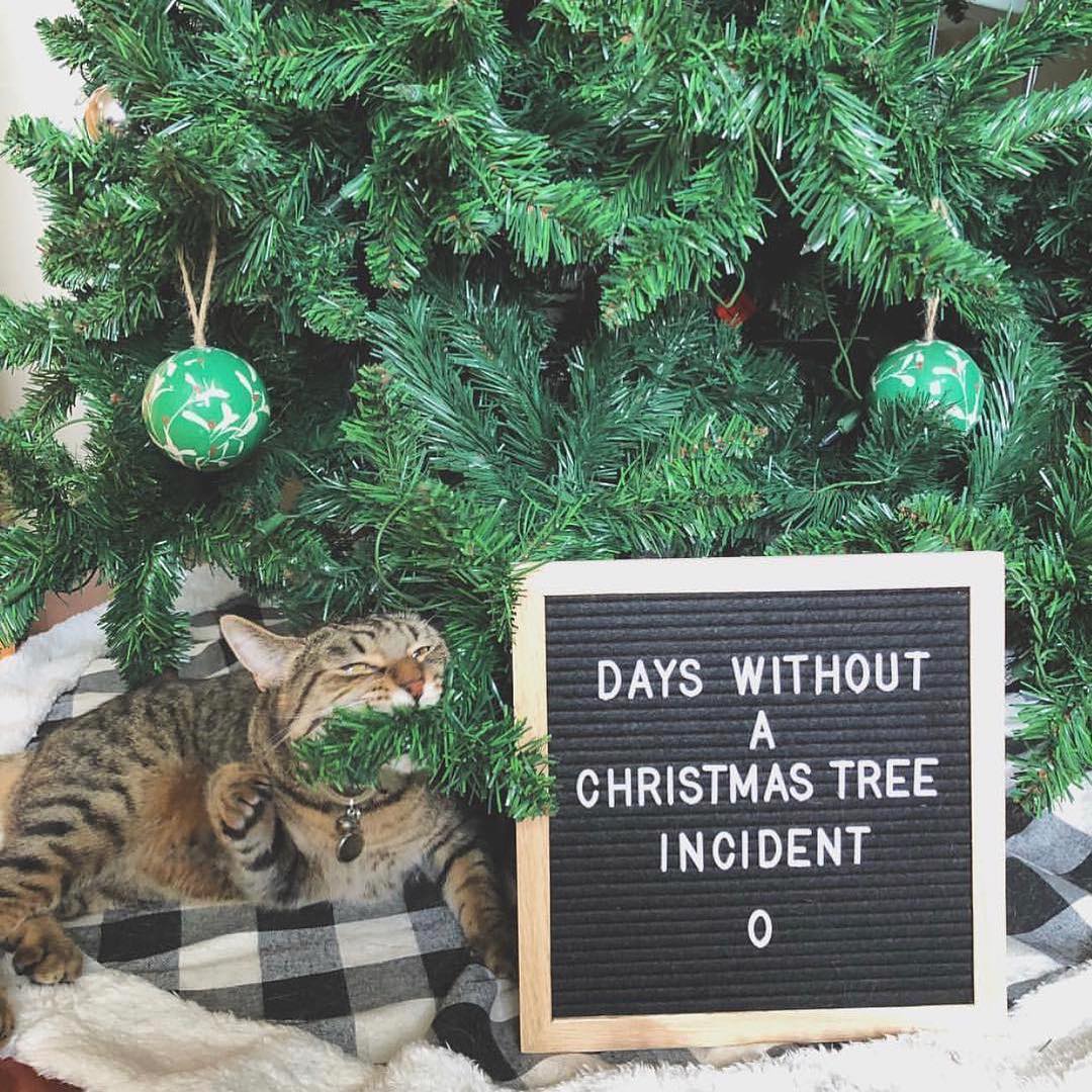 1. Todo dia oferece uma nova chance de alegria… ou caos – “Dias sem um incidente com a árvore de Natal = 0”