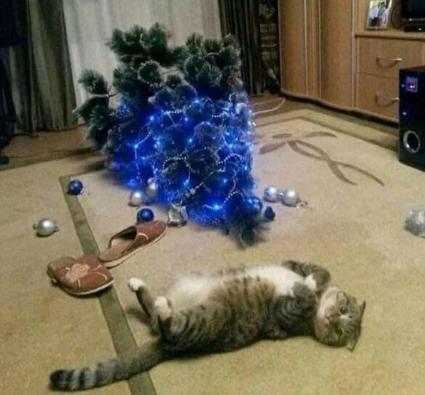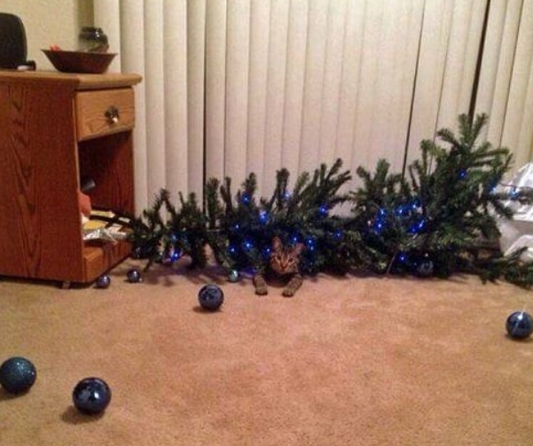 9. Nota para si mesmo: invente enfeites à prova de gatos. Lucro.
