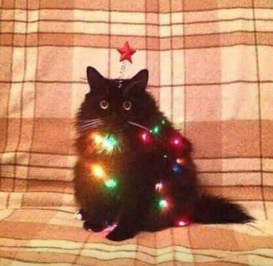 Os gatos simplesmente não conseguem entender por que, todo mês de dezembro, alguns humanos arrastam uma árvore perene para dentro de casa e a cobrem de luzes e enfeites.