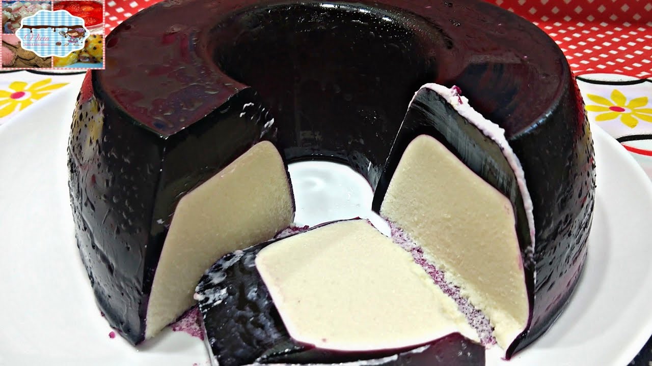 4. Gelatina flotante de amora recheada com pudim de leite em pó