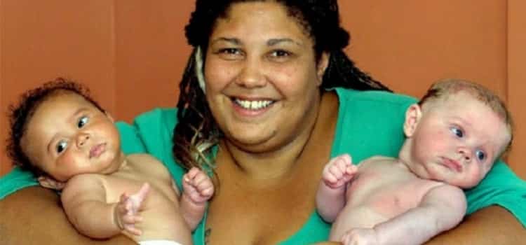 A mulher estava grávida de gêmeos, e quando os bebês nasceram, foi notada a grande diferença entre os dois: uma menina morena, de olhos castanhos e cabelos enrolados, e um menino loiro, de cabelos lisos e olhos claros.