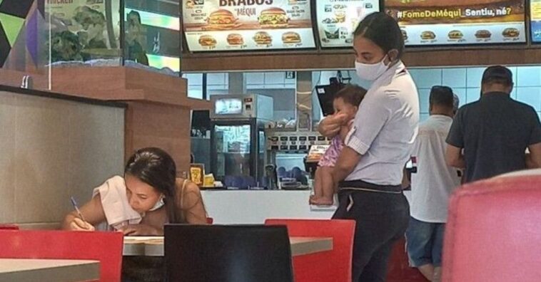 A cena foi presenciada por Luana Costa, que mais tarde compartilhou a história no LinkedIn, onde rapidamente se tornou viral. Enquanto a mãe preenchia um formulário de emprego, a gerente do McDonald’s ofereceu-se para segurar carinhosamente sua filha.