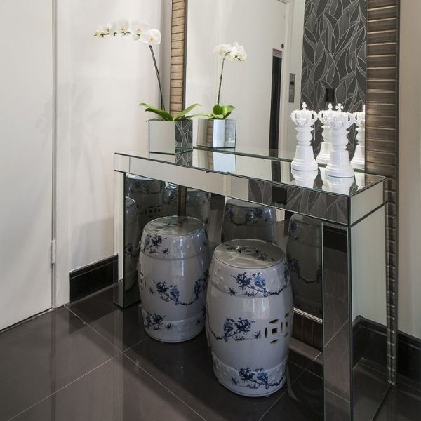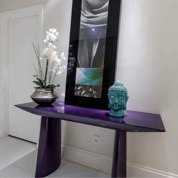 O item mais usado para essa função é o aparador. Ele é como uma mesinha mais alta e geralmente é acompanhado de um espelho, ambos encostados na parede. Quanto ao estilo de design desse aparador, bem como os demais elementos decorativos que vão compor esse espaço, veja nas sugestões a seguir.