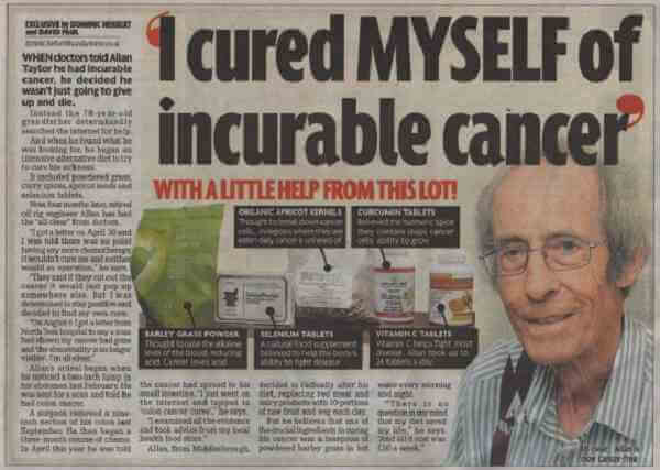 Visto os médicos não terem mais recursos para curar o câncer, Taylor tratou de combatê-lo com o auxílio da natureza. Ora, dia 6 de agosto, outra correspondência do Hospital de North Tees chega a casa dele. Agora, a notícia era bem animadora – o câncer tinha sumido e nem noutra parte do corpo o encontravam. Allan, de forma emocionada, afirma que conseguiu curar-se de um câncer crônico e mortal.