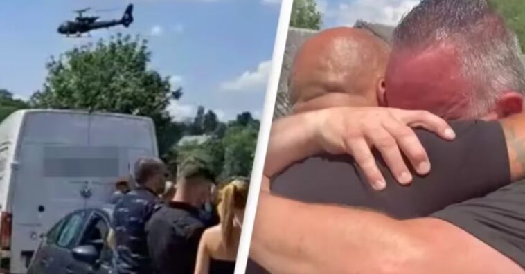 Assim que o homem pisou no gramado, vivíssimo, os parentes começaram a se aproximar e muitos não quiseram acreditar no que estavam vendo, se era um fantasma ou uma pegadinha muito estranha. Assista: