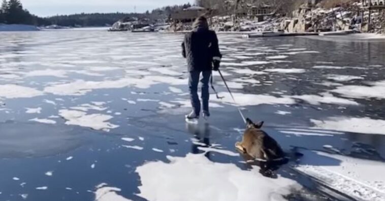 “Nós encontramos um cervo que havia caído de um penhasco e não conseguia ficar de pé no gelo ou sair do rio congelado”, escreveu Belanger no canal do ViralHog, no YouTube.