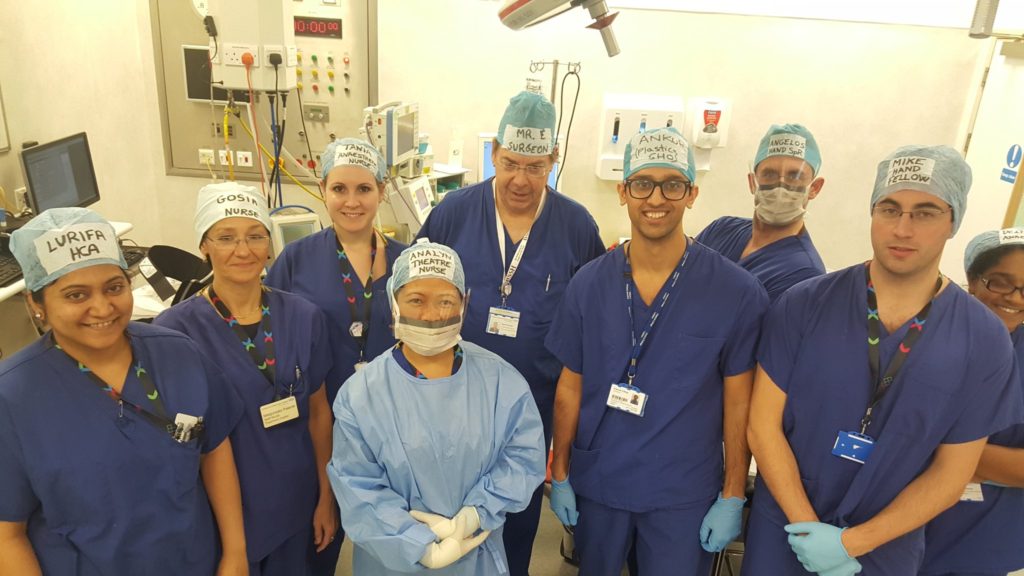No entanto, um médico australiano tomou uma atitude inusitada. Ele decidiu escrever o seu nome na touca de proteção. O motivo? Você descobre abaixo.
