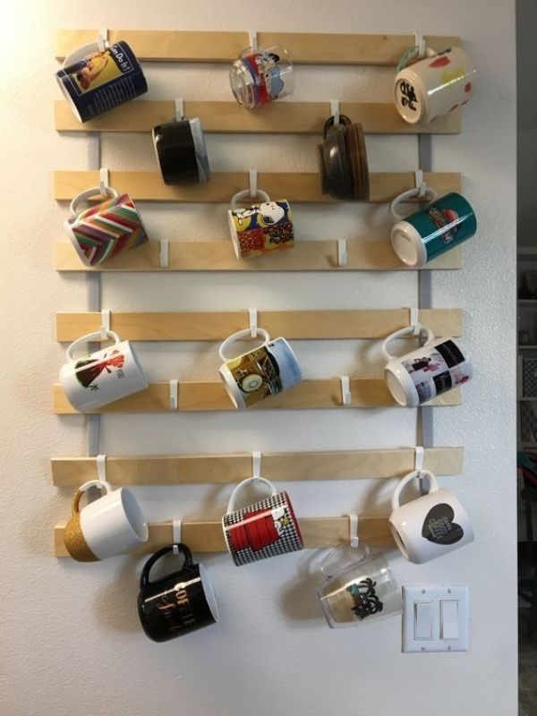 7. Na cozinha, além das xícaras, você pode aproveitar estrados de madeira para abrigar itens de uso diário e decorativos