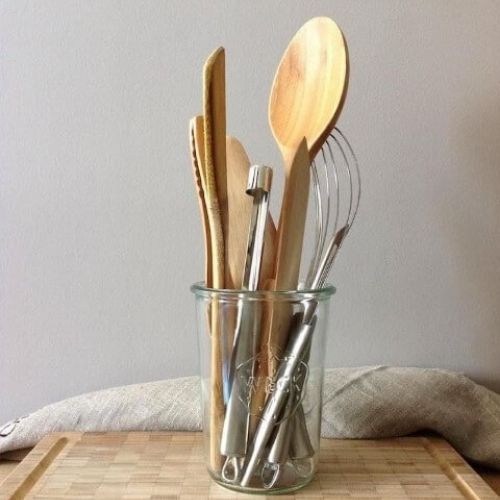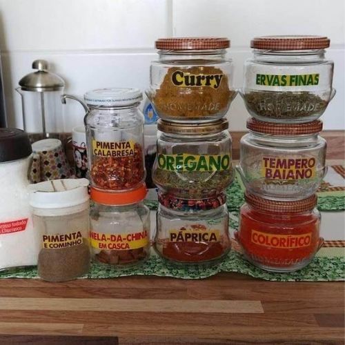 9. Organizar a cozinha com potes de vidro funciona muito bem!